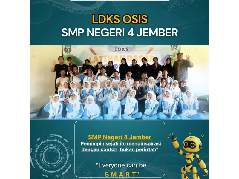 Rekap LDKS SMP Negeri 4 Jember ✨🌿Bertempat di Taman Botani Sukorambi, Latihan Dasar Kepemimpinan Siswa menjadi rangkaian pembelajaran bermakna dalam membentuk karakter, tanggung jawab, dan jiwa kepemimpinan. Setiap proses yang dilalui menanamkan nilai disiplin, kerja sama, dan integritas sebagai bekal...